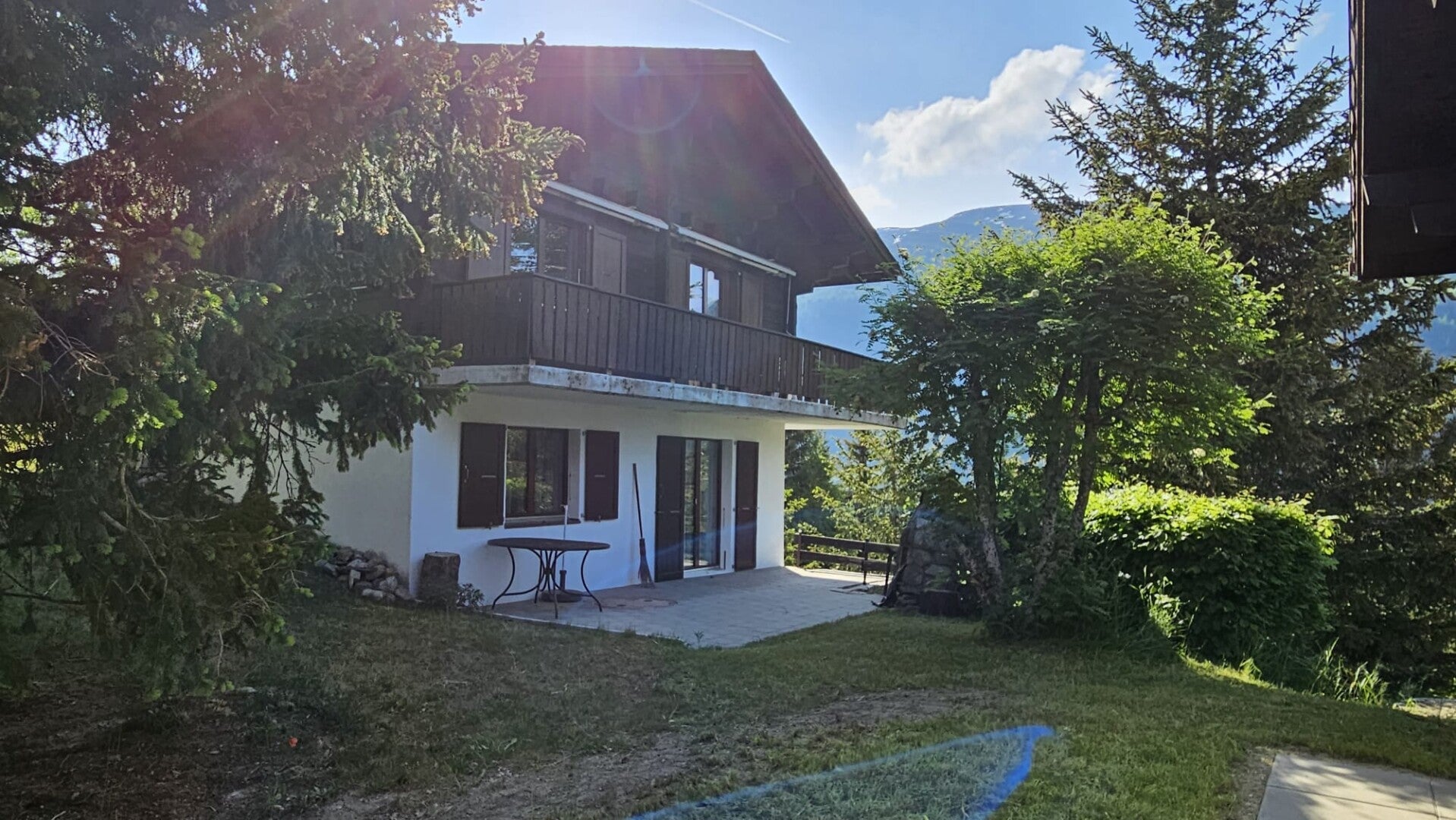 Geniessen sie die frische bergluft und den wunderschönen ausblick auf unserem grosszügigen Sitzplatz. Ideal für Mahlzeiten oder entspannte Stunden in der Sonne.