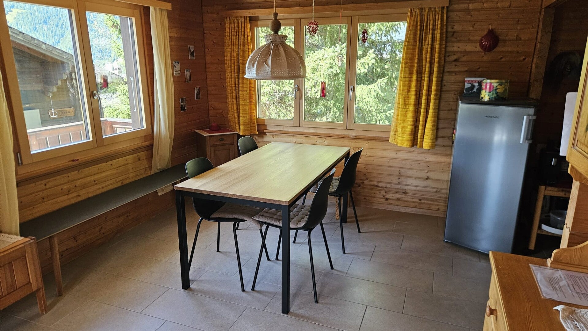 Unser Chalet ist auf zwei Etagen verteilt. Geniessen Sie den wunderbaren Wohnbereich, zwei Schlafzimmer – eines mit Doppelbett (180/200cm) und ein gemütliches Kinderzimmer mit drei Einzelbetten (90/200cm). Die grosszügige Küche lädt zum gemeinsamen Kochen ein, während zwei Badezimmer, eines davon neu renoviert im Jahr 2026 mit Dusche, für Komfort sorgen.
